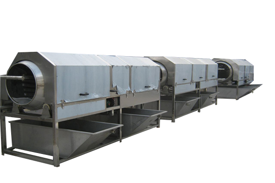 工作原理是氣泡清洗的同時滾筒轉動,滾筒內壁播料板不停的翻動原料使清洗更均勻,原料上粘有的雜質異物由滾筒孔排出,再由溢水排泄口排出清洗機,滾筒內裝有螺旋推料器,推料器把產品勻速推送出滾筒,由出料提升機把料送出清洗機,優點是清洗速度可調,清洗效果好,不損傷產品。